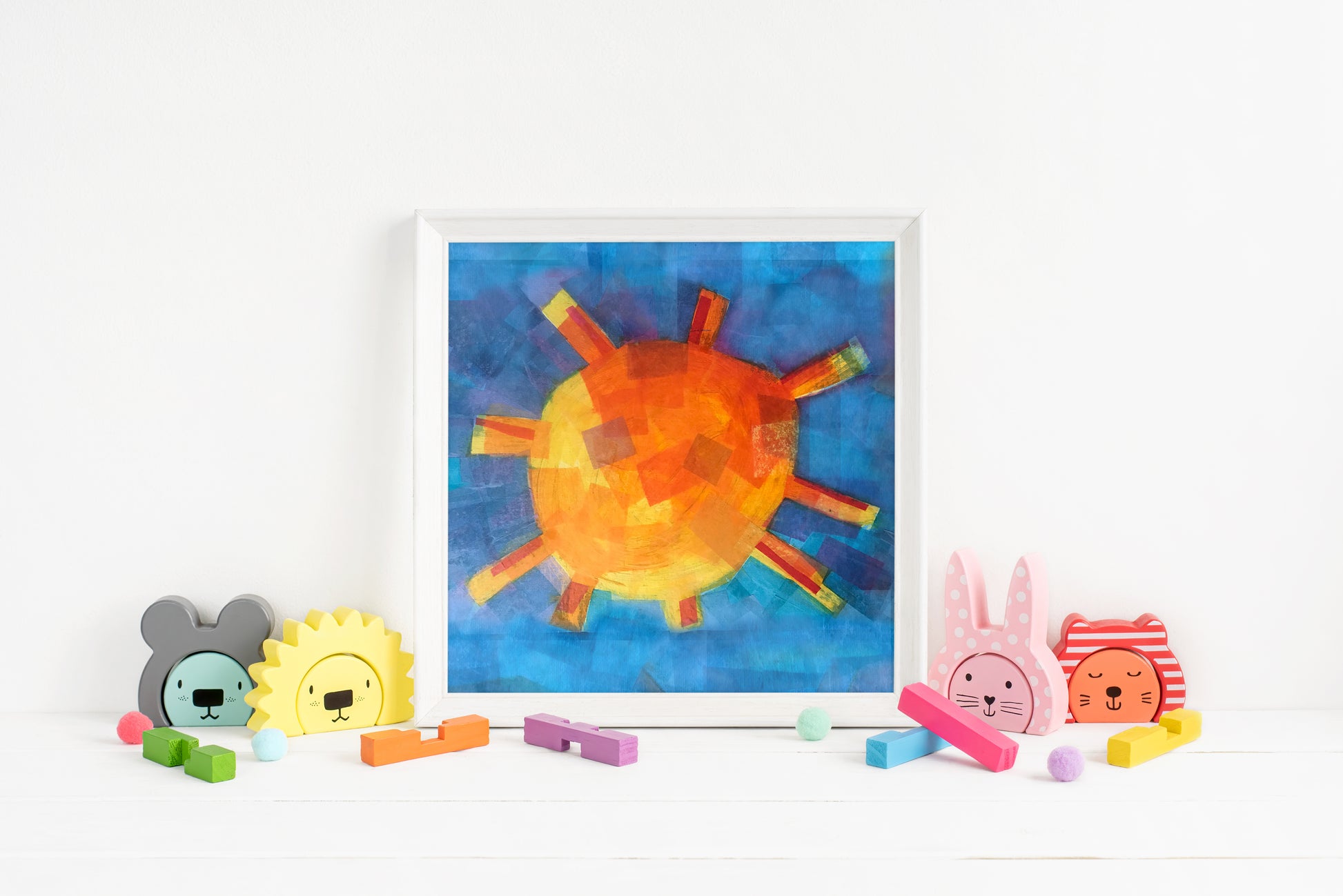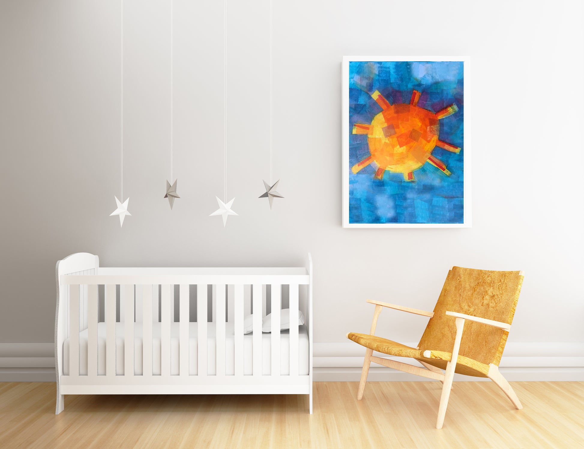 Inspire your baby with the wonder of the universe! This bright sun print makes a wonderful baby shower gift for a parent in search of a unique and colorful nursery or for anyone who loves the cosmos.