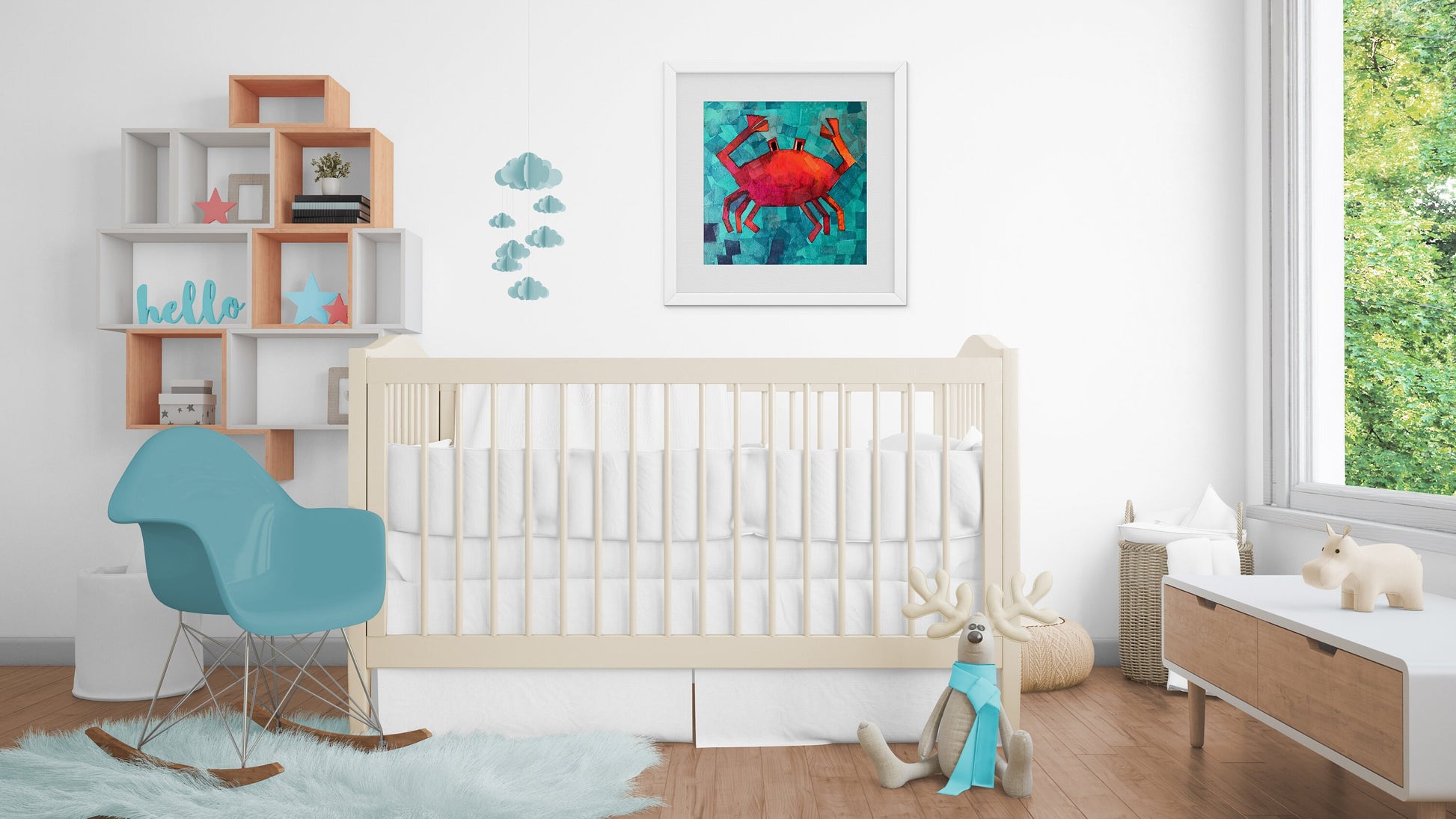 Transform your child's nursery into a magical under-the-sea wonderland! This crab print makes a wonderful baby shower gift for a parent in search of a unique and colorful nursery or for the Cancer in your life!