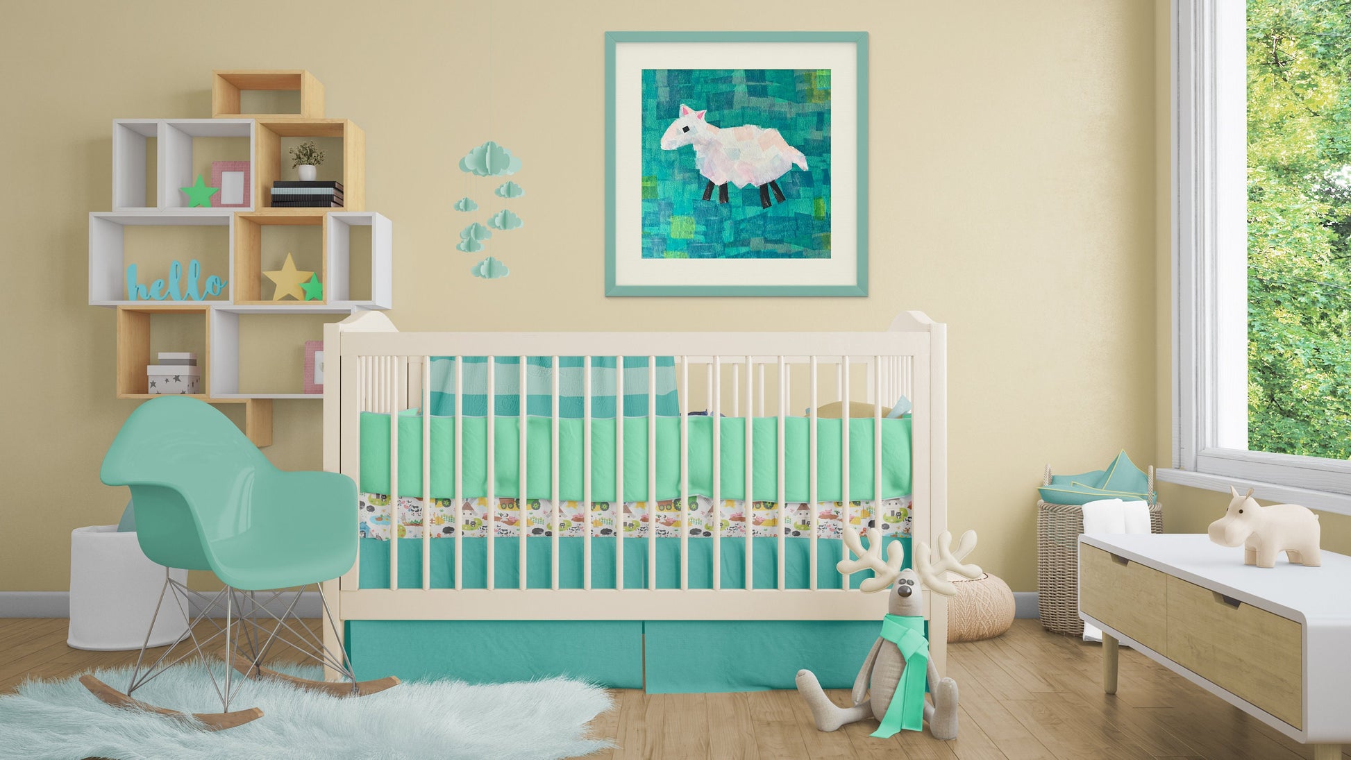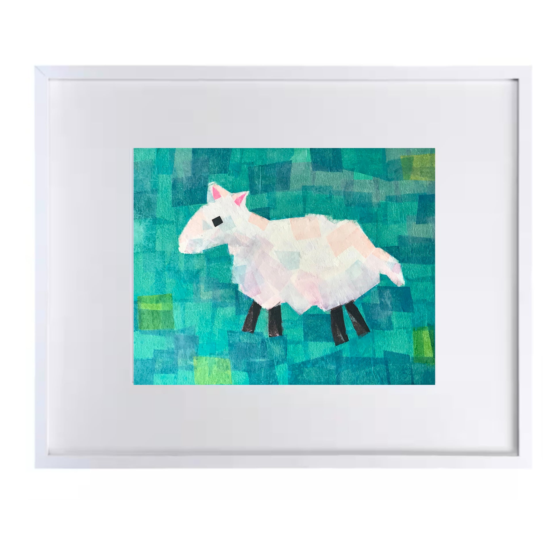 Give your child a nursery decorated with some of the most recognizable animals (and when they can talk, some of the best animals noises to imitate!) for children. This sheep print makes a wonderful baby shower gift for a parent in search of a unique and colorful nursery or a birthday present for someone who loves cows.