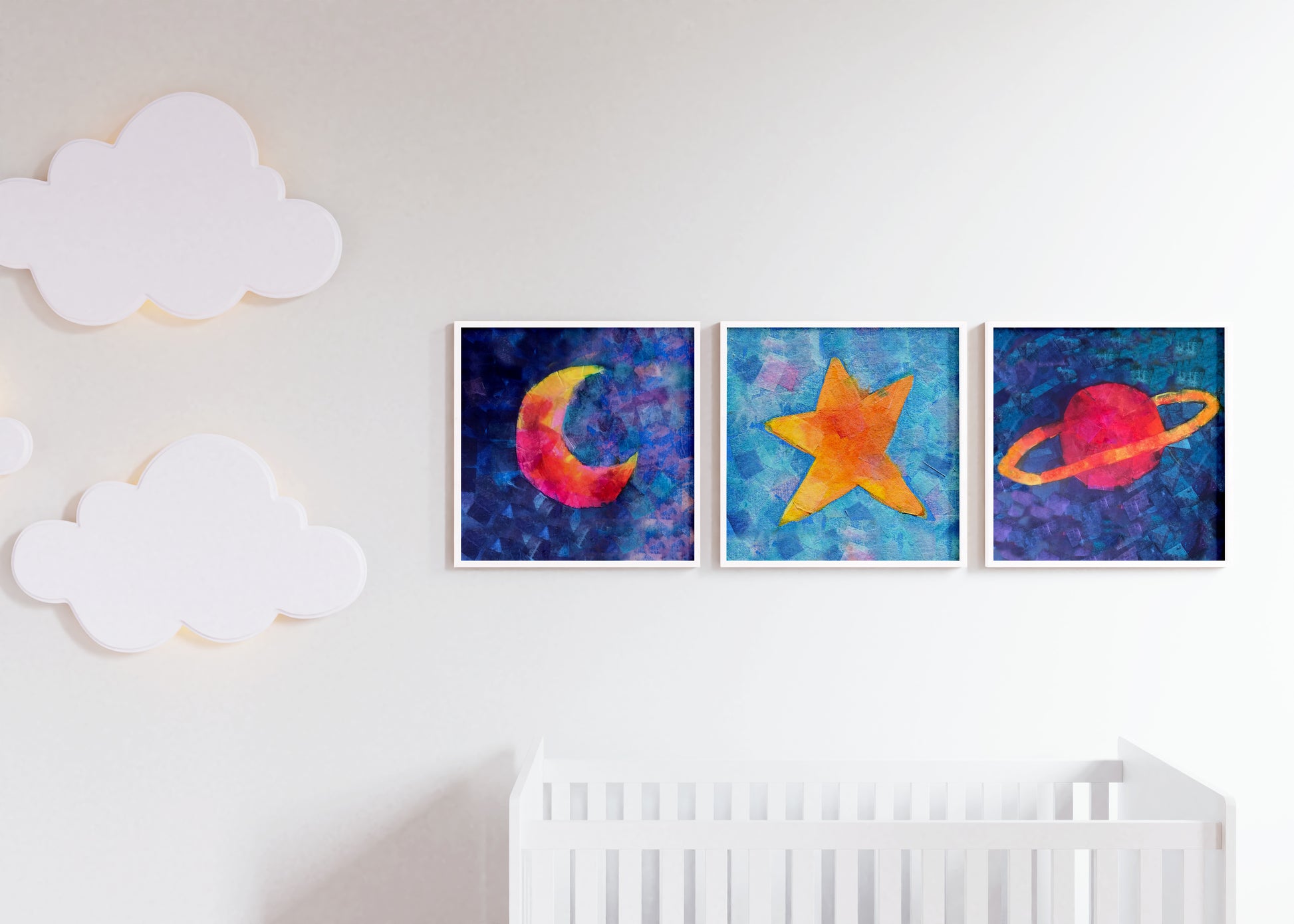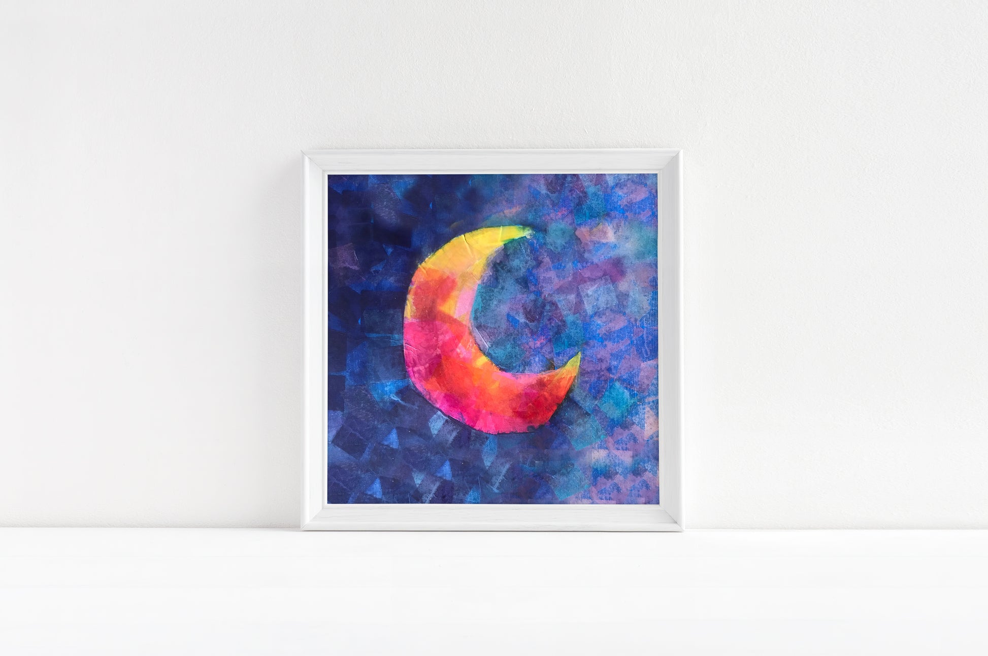 Inspire your baby with the wonder of the universe! This crescent moon print makes a wonderful baby shower gift for a parent in search of a unique and colorful nursery or for anyone who loves the cosmos.