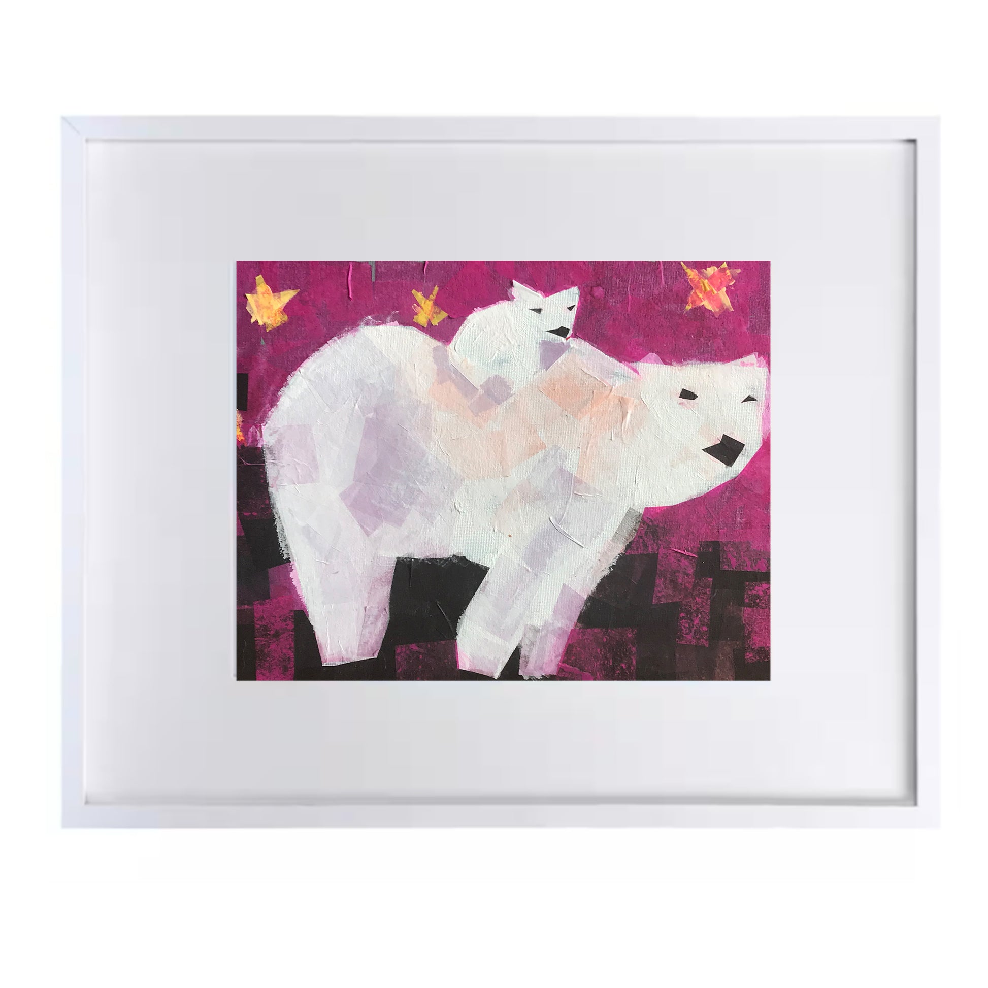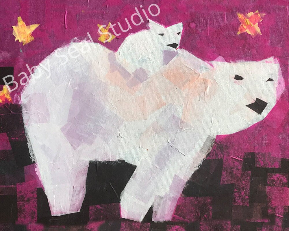 Turn your child's nursery into an arctic wonderland! This high-quality mommy and baby polar bear print with a pink or turquoise background makes a wonderful baby shower gift for a parent in search of a unique and colorful nursery or a birthday present for someone who loves polar bears. Available in vertical, horizontal, or square options, in addition to the two color choices.