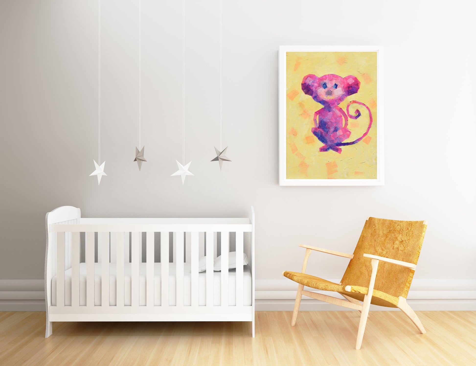 Making a cute and colorful nursery just got easier! This cheeky monkey print makes a wonderful baby shower gift for a parent in search of a unique and colorful nursery or for anyone who loves monkeys.