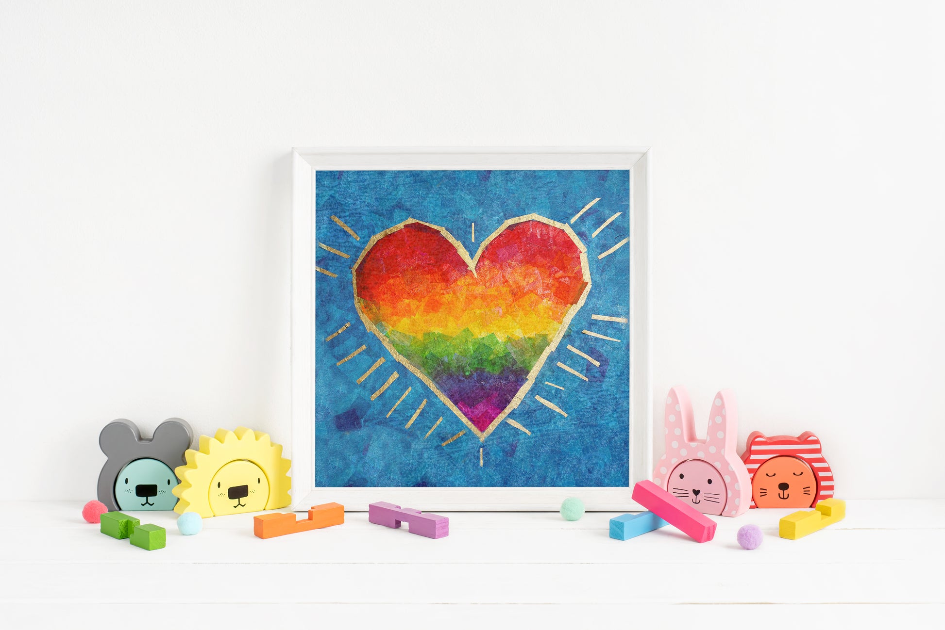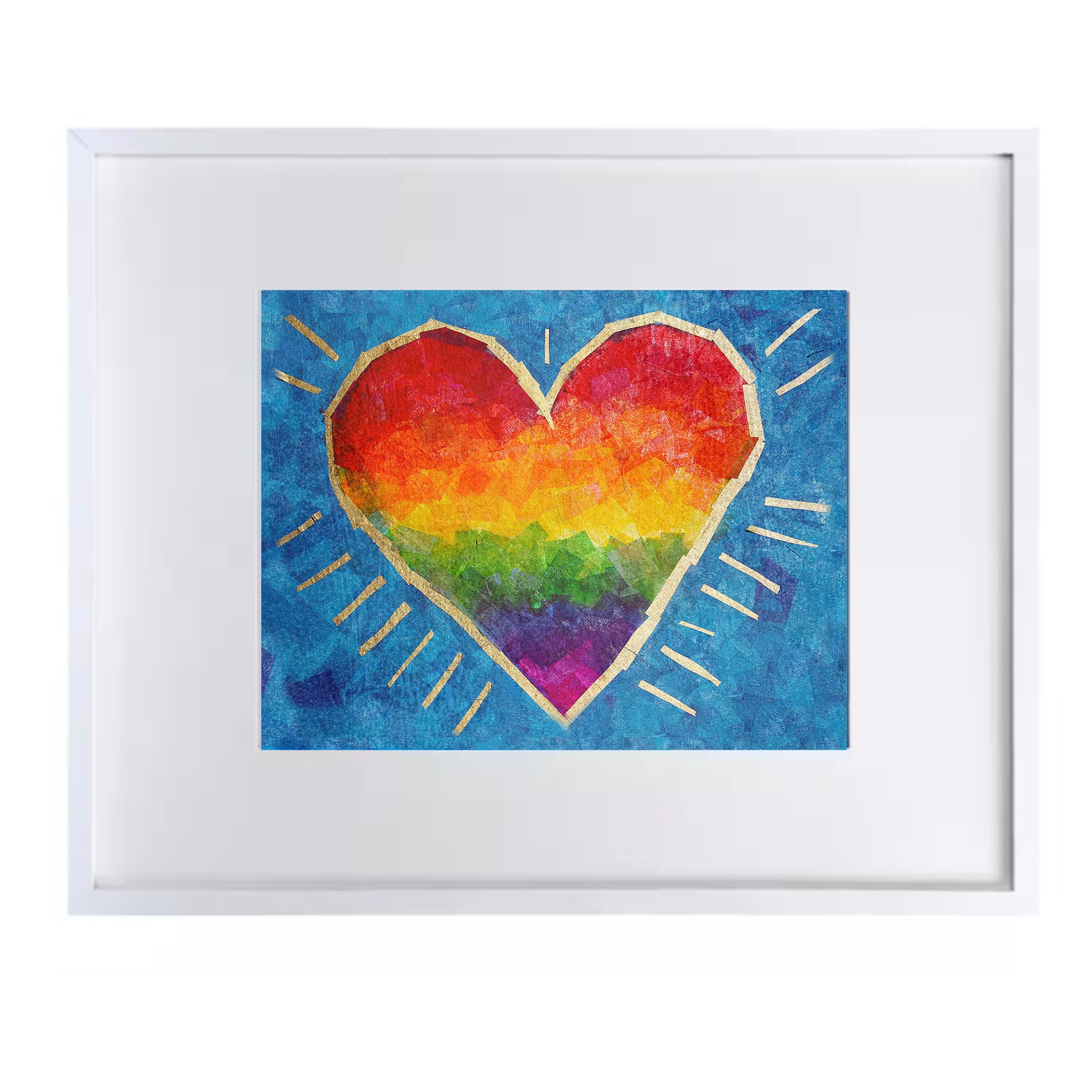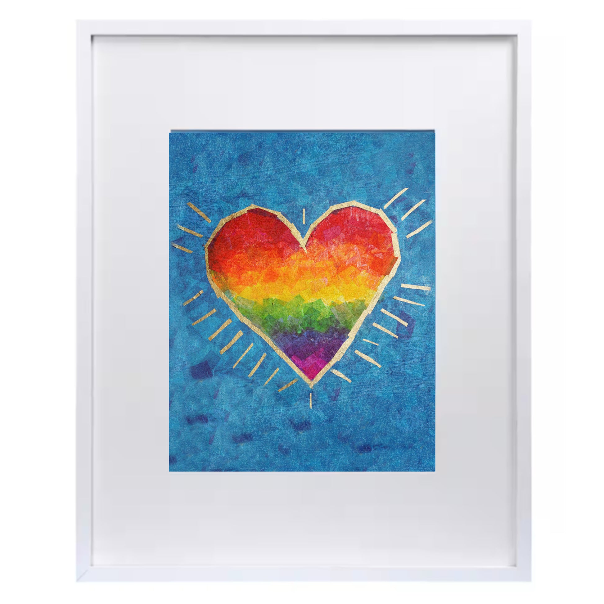 Let a child know they are loved just by looking at a picture! This print of a rainbow heart with gold accents makes a wonderful baby shower gift for a parent in search of a unique and colorful nursery or for anyone who wants to share their love.