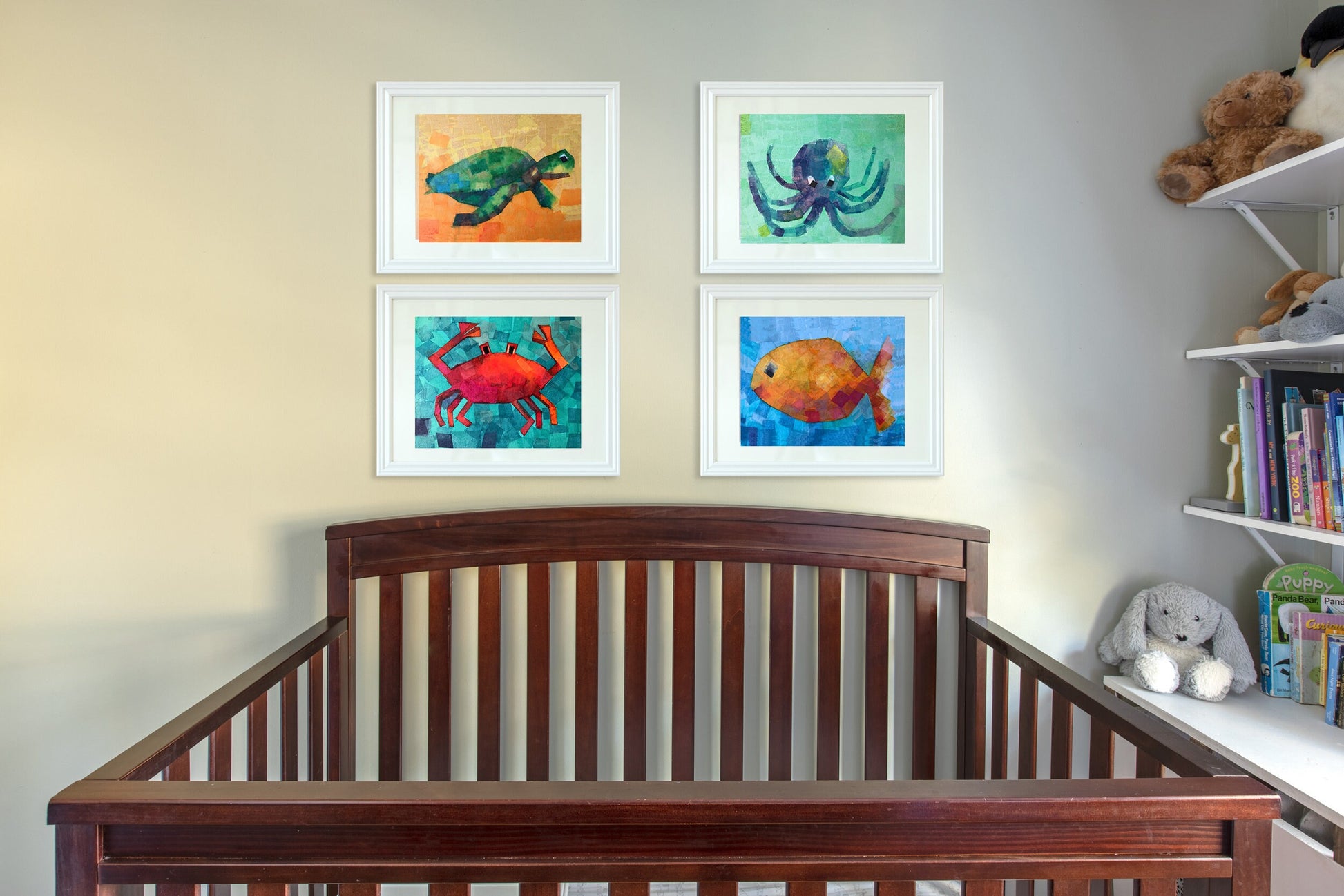 Transform your child's nursery into a magical under-the-sea wonderland! This sea turtle print makes a wonderful baby shower gift for a parent in search of a unique and colorful nursery or for anyone who loves fish.