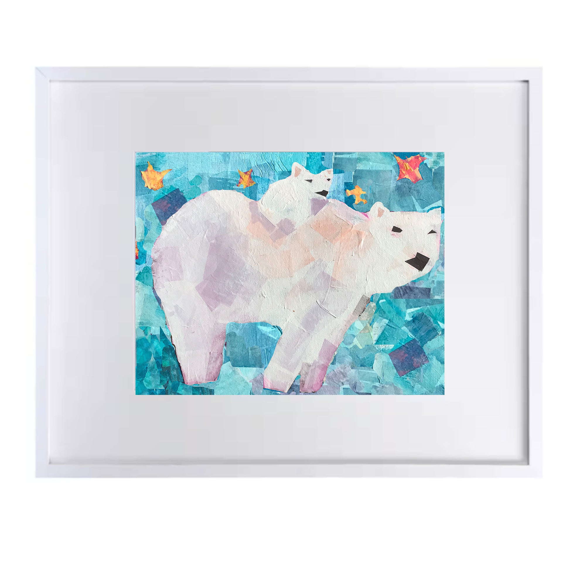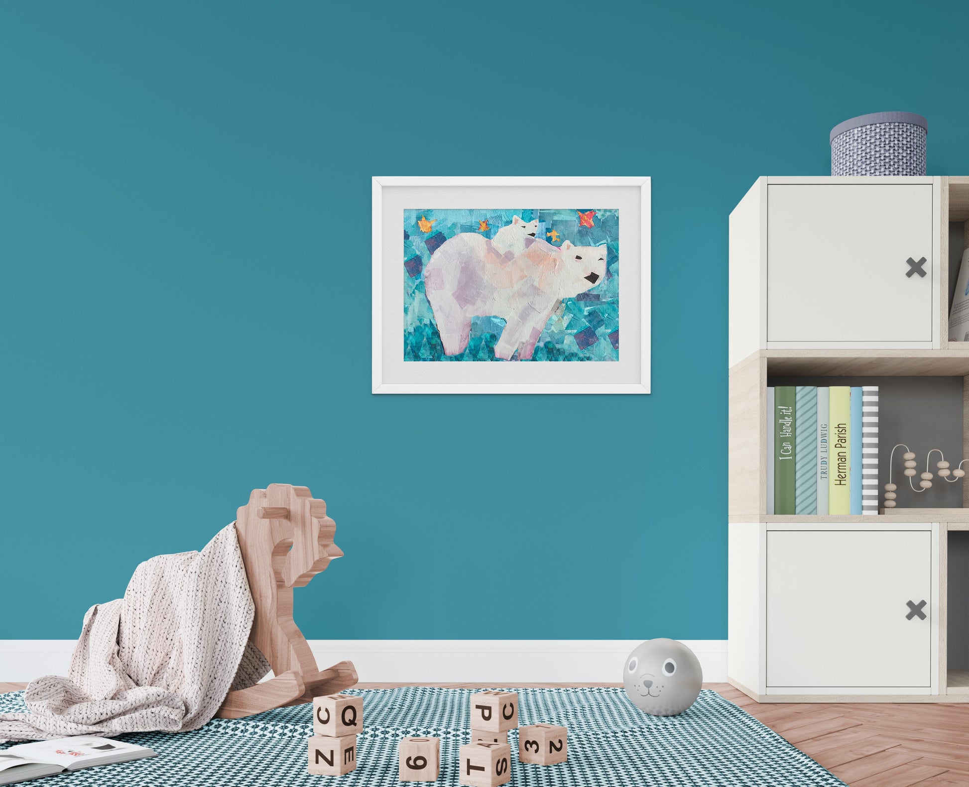 Turn your child's nursery into an arctic wonderland! This high-quality mommy and baby polar bear print with a pink or turquoise background makes a wonderful baby shower gift for a parent in search of a unique and colorful nursery or a birthday present for someone who loves polar bears. Available in vertical, horizontal, or square options, in addition to the two color choices.